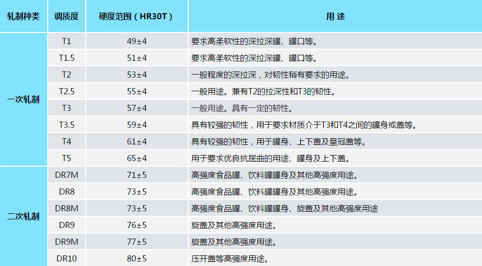 注: 馬口鐵使用范圍非常廣,上表所列僅供參考。